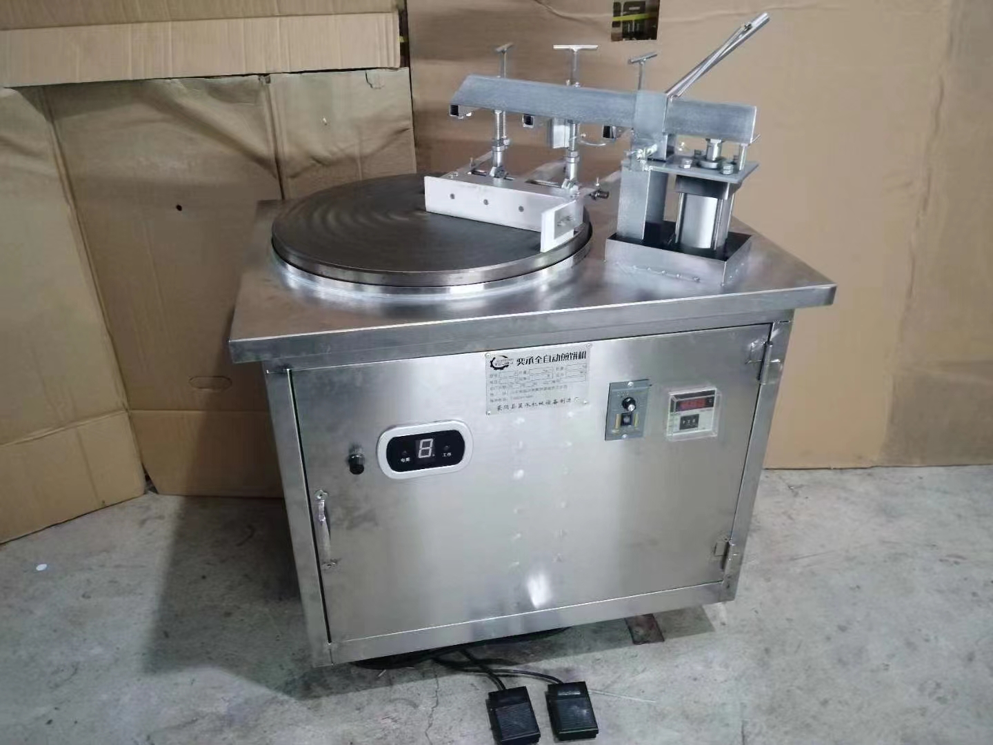 燃气全自动煎饼机不锈钢机身,耐腐蚀,加厚不粘锅,聚能发热盘,受热均匀,简单明了的操作界面,使用简单,易清洁。